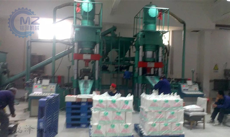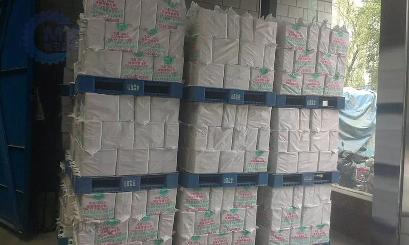 山西中鹽集團2臺500噸舔鹽磚機設備生產(chǎn)現(xiàn)場
