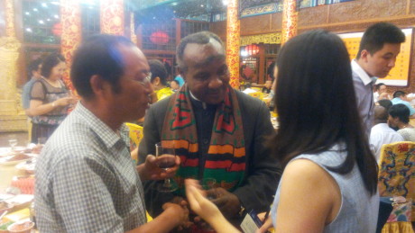 8月2日晚,我公司杜甫機(jī)械董事長(zhǎng)李新生與各位代表在王爺府--白家大院歡迎贊比亞共和國(guó)前副總統(tǒng)盧潘多.姆瓦佩,宴會(huì)期間與贊比亞共和國(guó)前副總統(tǒng)盧潘多.姆瓦佩、杰出華商協(xié)會(huì)主席盧俊卿、執(zhí)行主席韓薇進(jìn)行親切交談。