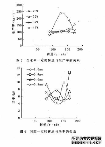 (3)由方差分析的直觀圖可知.試驗的最佳水平組合是合水率為37%左右、轉(zhuǎn)速為127r/min、間隙為1.0mm時,圧塊機(jī)的生產(chǎn)率和功率最優(yōu).這一水平組合并沒有在試驗中出現(xiàn),經(jīng)補(bǔ)做試驗得出;生產(chǎn)率為248.03kg/h 功率為4.12kw。