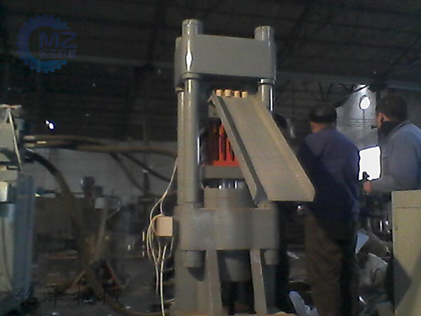 舔鹽壓塊機(jī)由立柱、上梁、中梁和下梁、工作缸和返回缸組成,在中梁和立柱之間設(shè)置有柱導(dǎo)向結(jié)構(gòu),四柱舔鹽壓塊機(jī)其特點(diǎn)在于結(jié)構(gòu)組成:柱導(dǎo)向結(jié)構(gòu)它由導(dǎo)板和楔子組成的四個(gè)導(dǎo)向部件組成,通過壓力板將楔子壓緊固定在中梁中,導(dǎo)板靠近導(dǎo)板,上端附近的位置設(shè)置有支撐板,調(diào)整墊為陣列。在支撐板和壓力板之間,在工作缸柱塞桿的下端設(shè)置有圓柱形空腔,在圓柱形空腔內(nèi)設(shè)置有第一球墊和球柱,在球柱外設(shè)置有支撐套;在支撐套筒下端的上架上設(shè)置結(jié)構(gòu),在支撐結(jié)構(gòu)與突出部之間設(shè)置有支撐結(jié)構(gòu)。